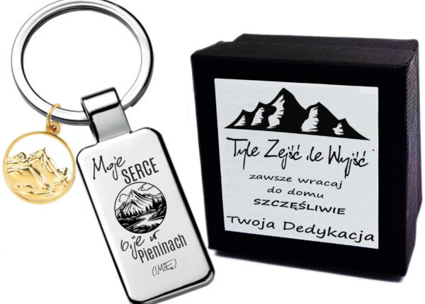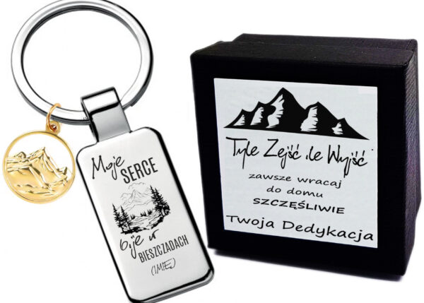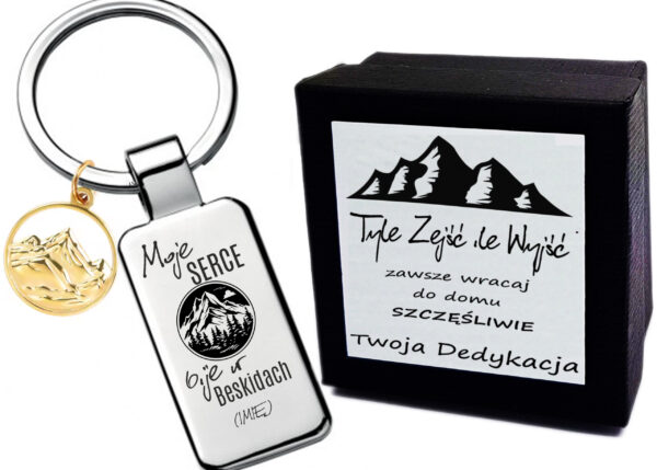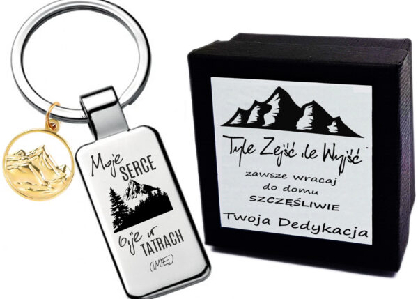 Brelok z grawerem „Lubię wracać w górskie miejsca, tu gdzie byłem już” – personalizowany prezent z motywem gór | Złota zawieszka | Dla miłośnika gór, podróżnika, wspinacza, męża, żony, chłopaka lub dziewczyny | Emocjonalna pamiątka z ukochanych szlaków – idealna na urodziny, walentynki, rocznicę