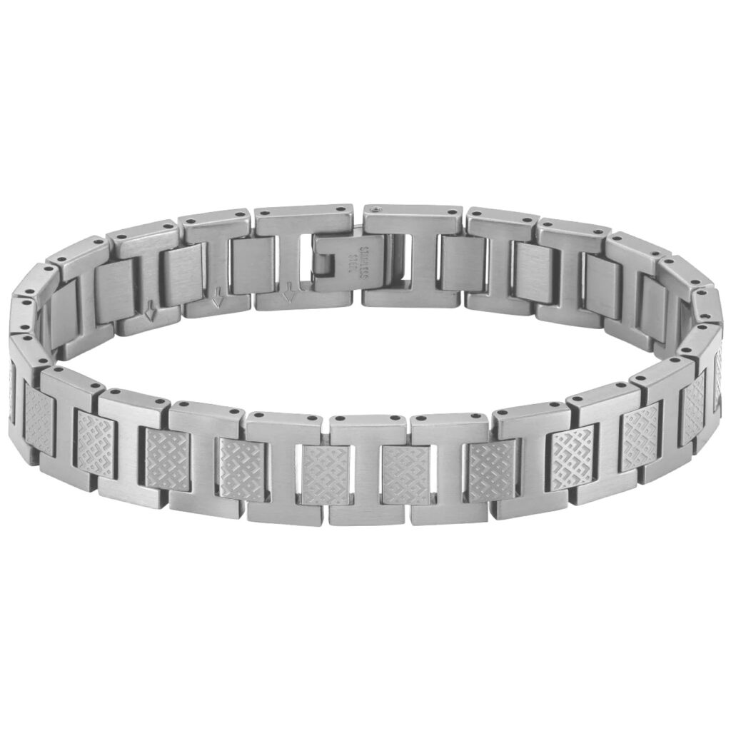 Wszechstronność: Srebrny kolor stali szlachetnej idealnie współgra z każdym zegarkiem na bransolecie oraz pasuje do biurowego dress code’u i weekendowego stroju.