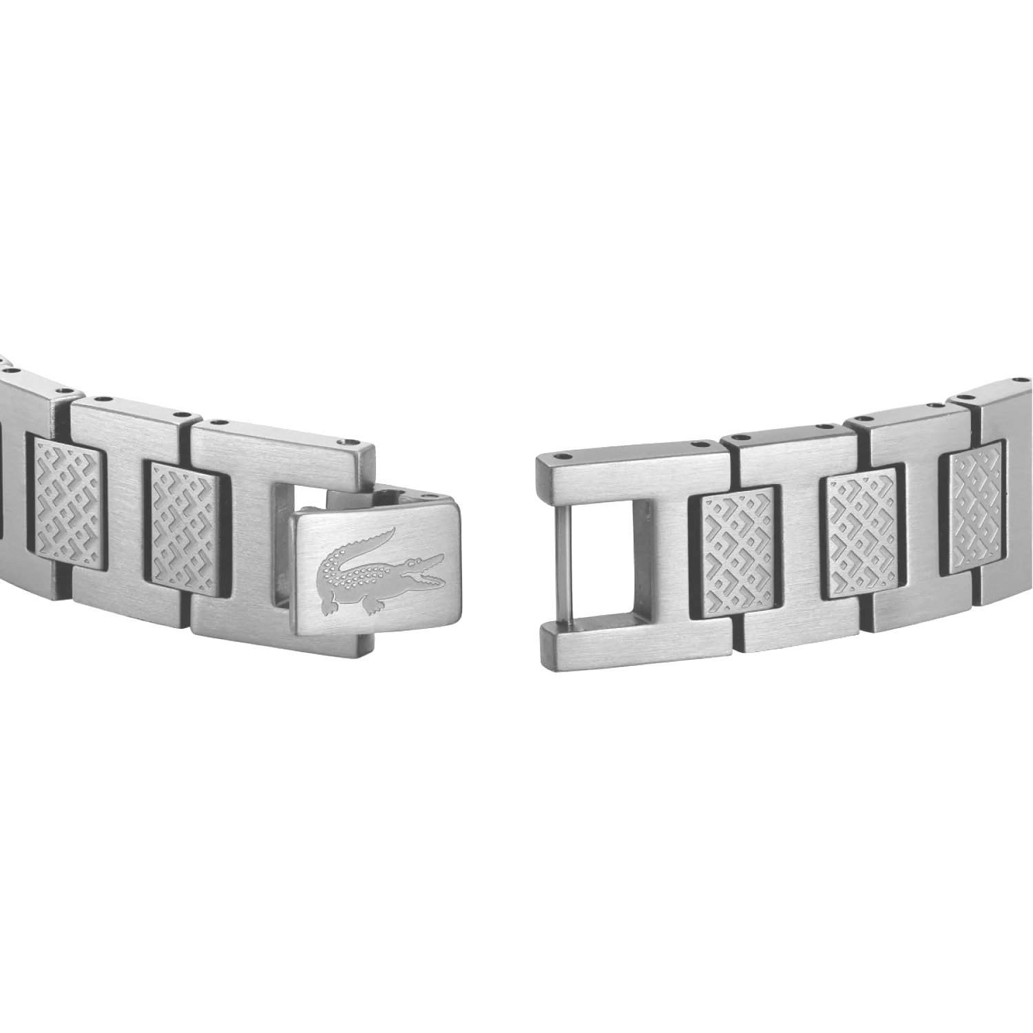 Ikona na Nadgarstku: Charakterystyczne logo krokodyla precyzyjnie naniesione na centralne ogniwo podkreśla autentyczność i prestiż marki.