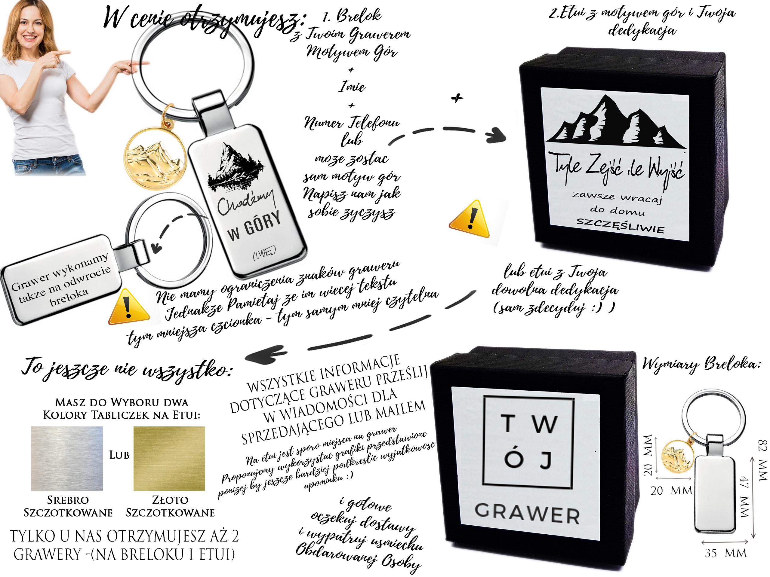 Ania, zapalona wędrowniczka, dostała ten brelok od swojego partnera tuż przed wyprawą w Tatry. Grawer: „Wróć z uśmiechem – jak zawsze” stał się jej talizmanem. Od tego czasu brelok towarzyszy jej wszędzie – od codziennej drogi do pracy po kolejne zdobyte szczyty. Za każdym razem, gdy zerka na złotą zawieszkę, wracają wspomnienia i uśmiech.