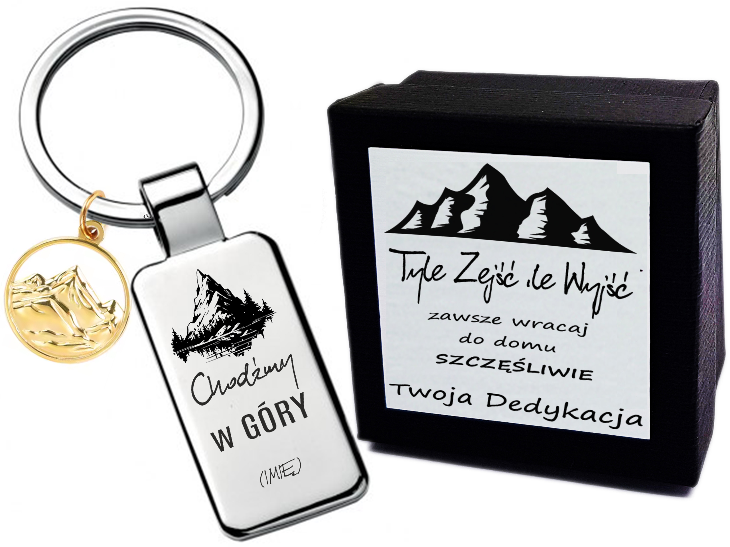 Breloczek z grawerem – Chodźmy w Góry – Prezent dla miłośnika gór Złota zawieszka góry biżuteria Brelok Góry