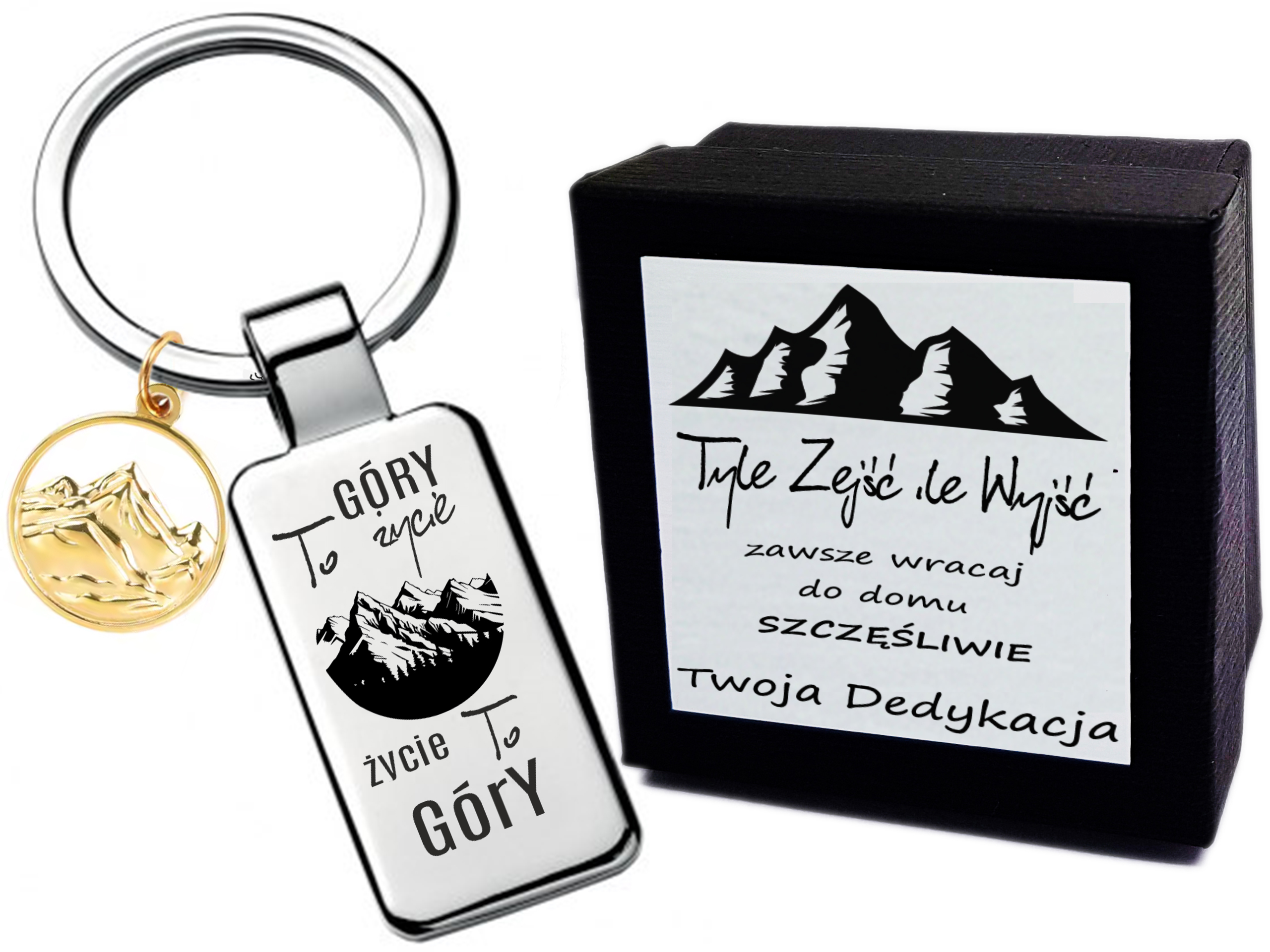 Breloczek z grawerem – Góry to życie życie to góry – Prezent dla miłośnika gór Złota zawieszka góry biżuteria Brelok Góry prezent dla męża dziewczyny żony kobiety chłopaka mężczyzny