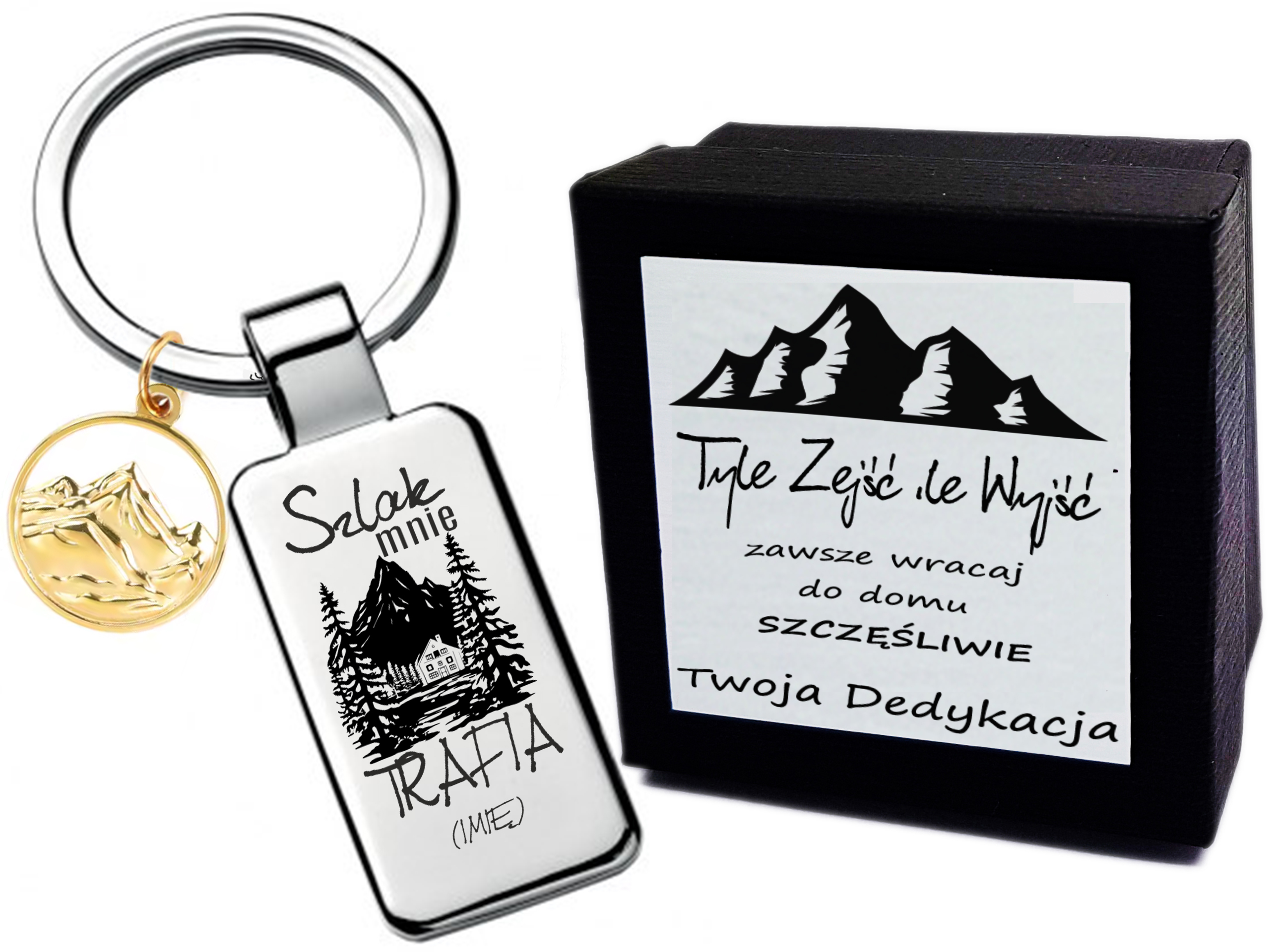 Breloczek z grawerem – Szlak mnie Trafia – Prezent dla miłośnika gór Złota zawieszka góry biżuteria Brelok Góry