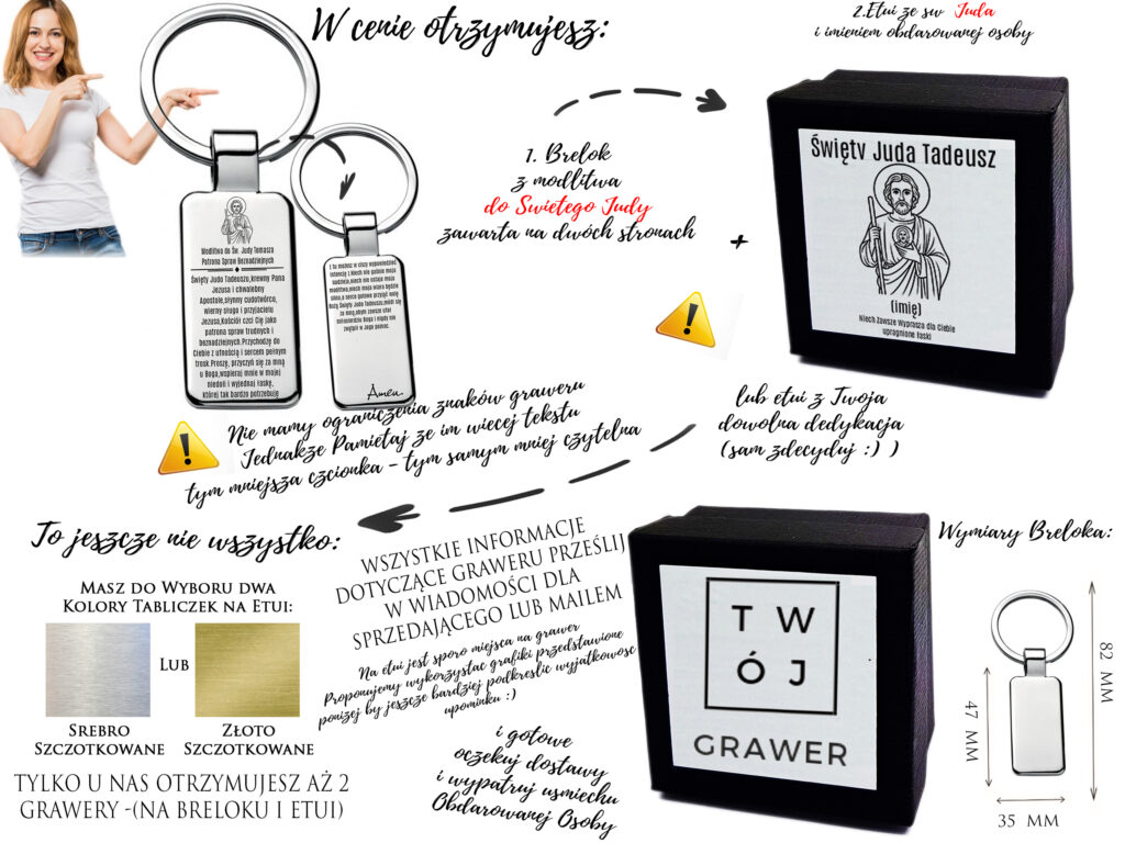 • Trwały grawer modlitwy do św. Judy Tadeusza – nieścieralny, wyraźny, pełen treści