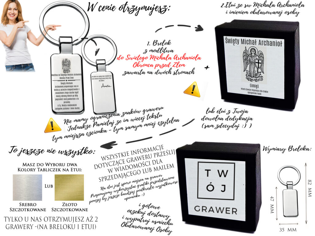 Brelok z modlitwą do Świętego Michała Archanioła + personalizowane etui
