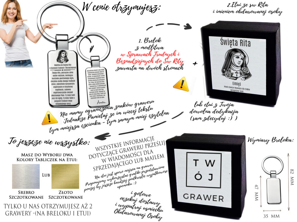 Brelok do Kluczy Zawieszka z grawerem Modlitwa do Św. Rity Sprawy trudne i Beznadziejne – Medalik