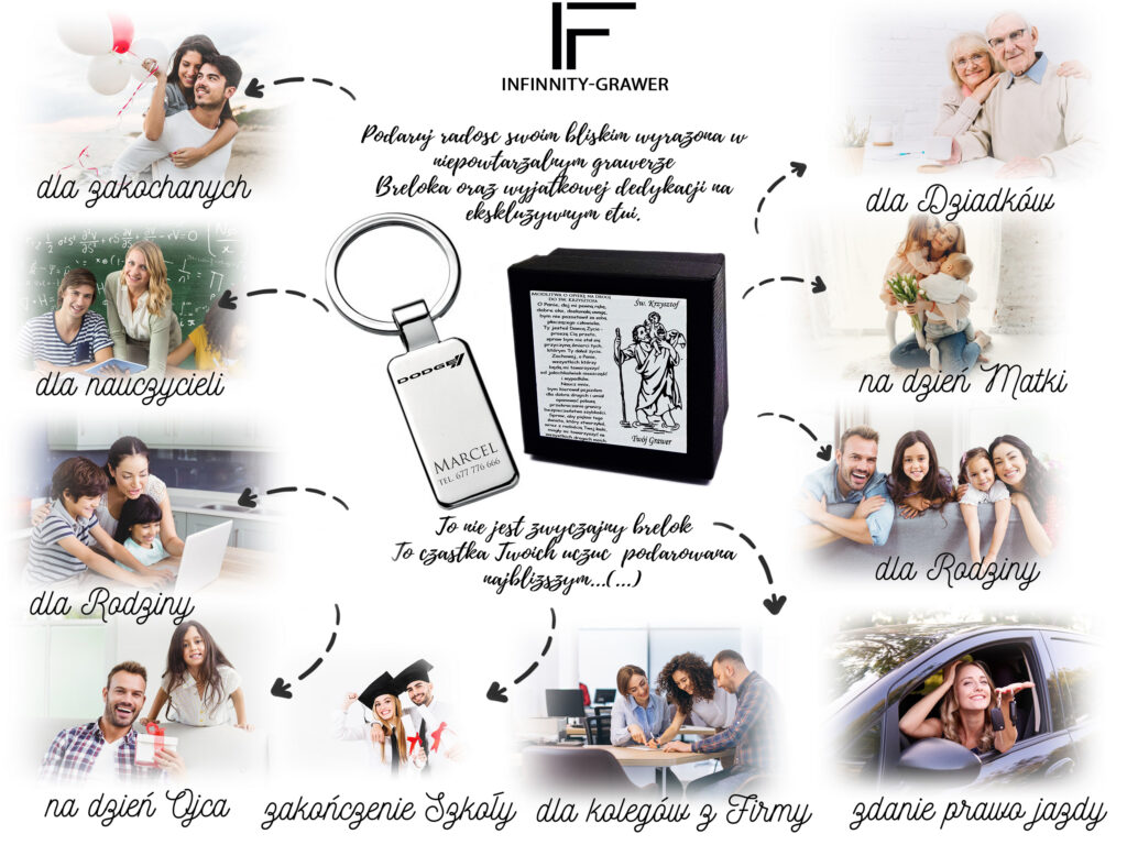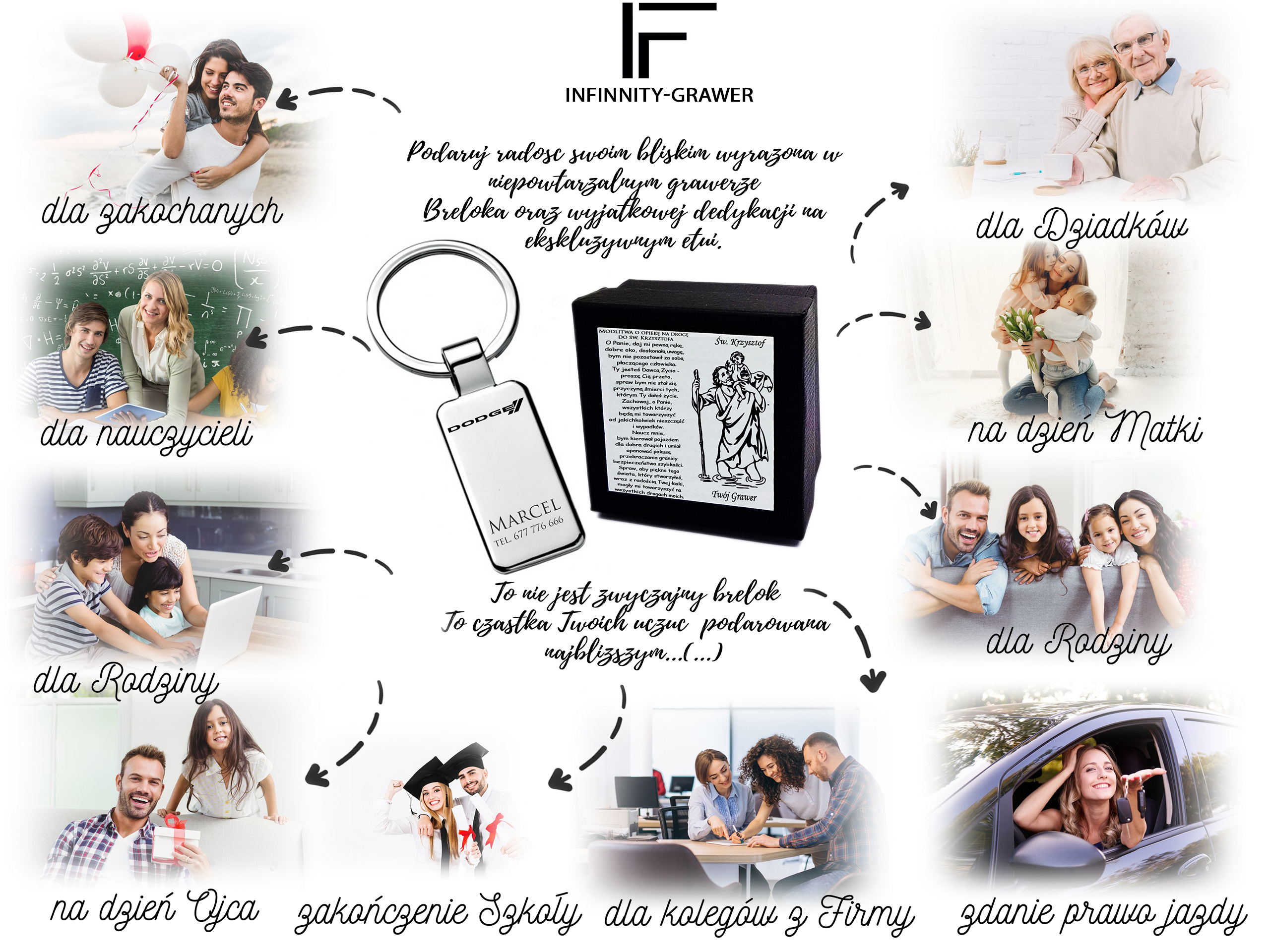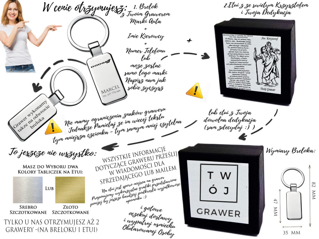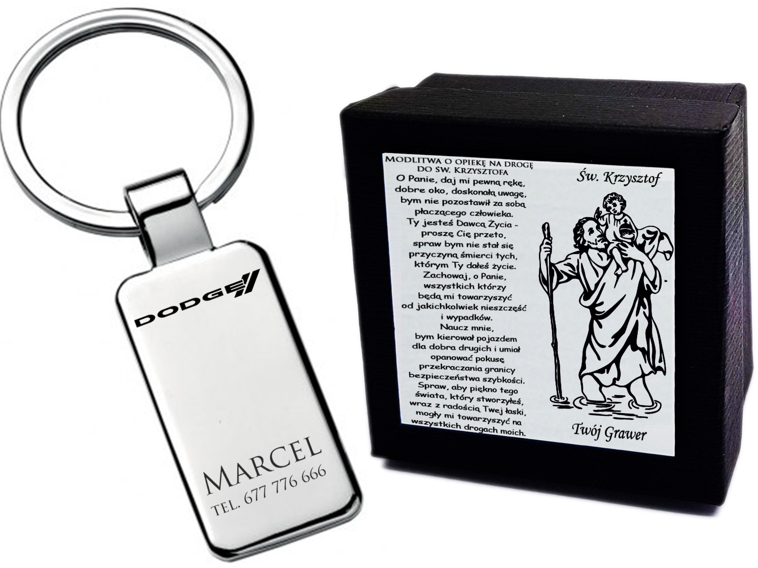 Brelok Dodge do Kluczy Grawer św. Krzysztof + ETUI Prezent dla Kierowcy