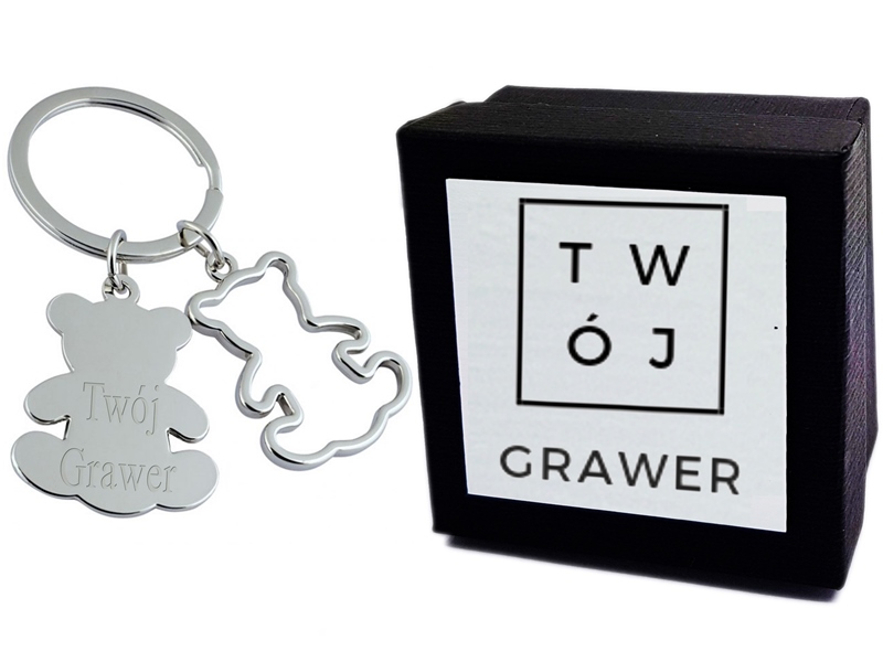 Grawer wykonujemy laserowo z najwyższą precyzją – jest trwały, nieścieralny i elegancki, dzięki czemu Twój brelok będzie wyglądał idealnie przez długie lata.