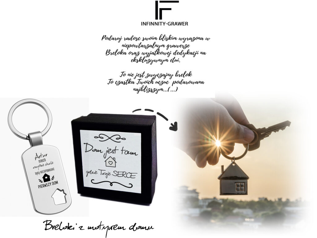 Metalowy, błyszczący, przestrzenny brelok 3D w kształcie Prostokąta z Motywem Domu a wszystko zapakowane w eleganckie pudełko także z grawerem. Idealne na prezent dla bliskich!