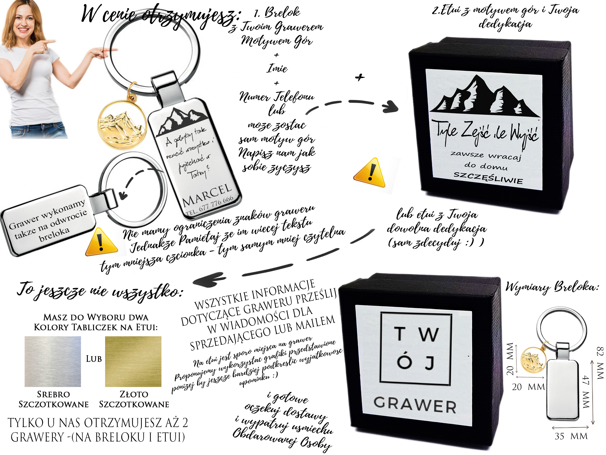 Ania, zapalona wędrowniczka, dostała ten brelok od swojego partnera tuż przed wyprawą w Tatry. Grawer: „Wróć z uśmiechem – jak zawsze” stał się jej talizmanem. Od tego czasu brelok towarzyszy jej wszędzie – od codziennej drogi do pracy po kolejne zdobyte szczyty. Za każdym razem, gdy zerka na złotą zawieszkę, wracają wspomnienia i uśmiech.