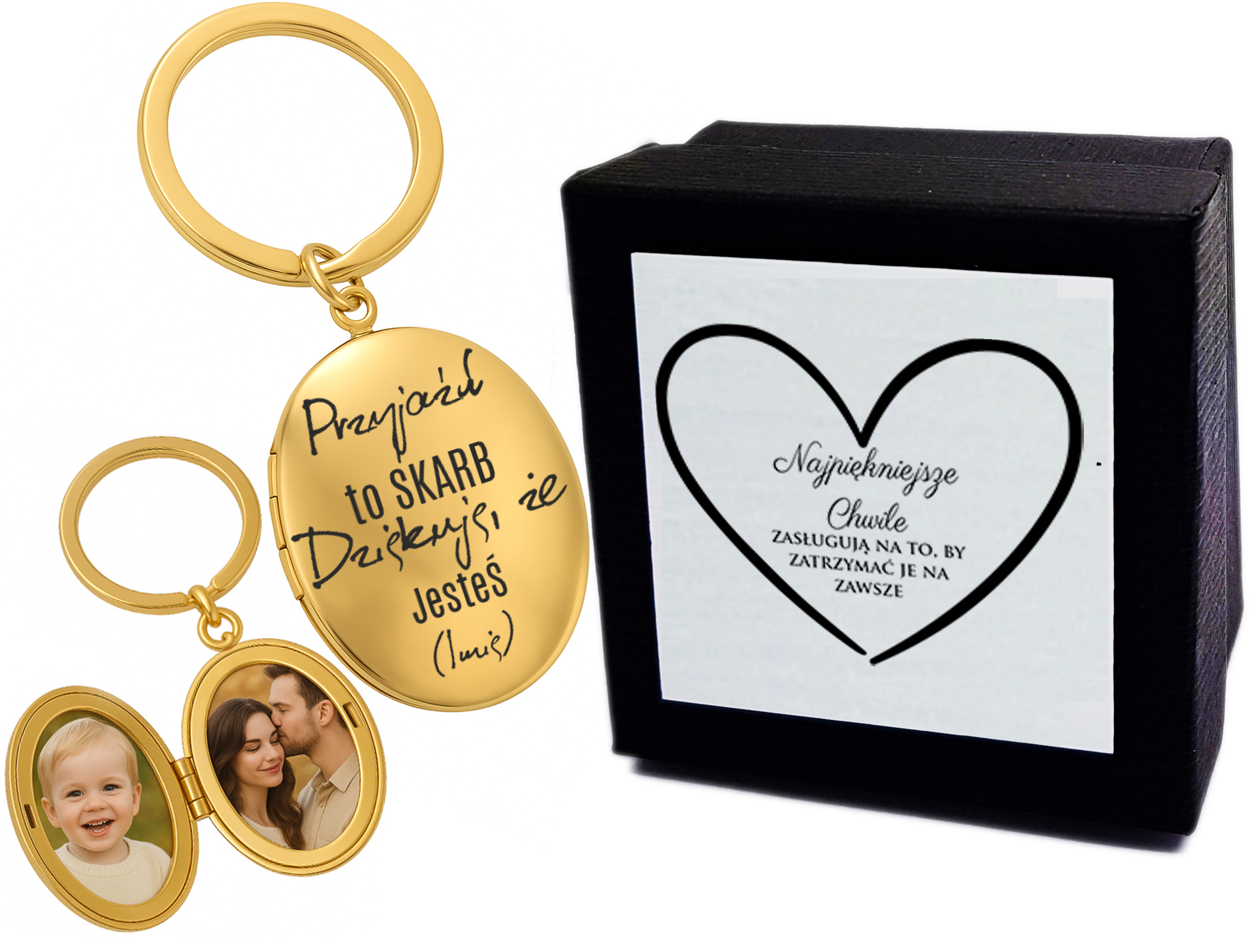 To nie jest zwykły brelok – to Twoja prywatna opowieść zamknięta w złocistym medalionie. To symbol bliskości, który daje siłę każdego dnia.