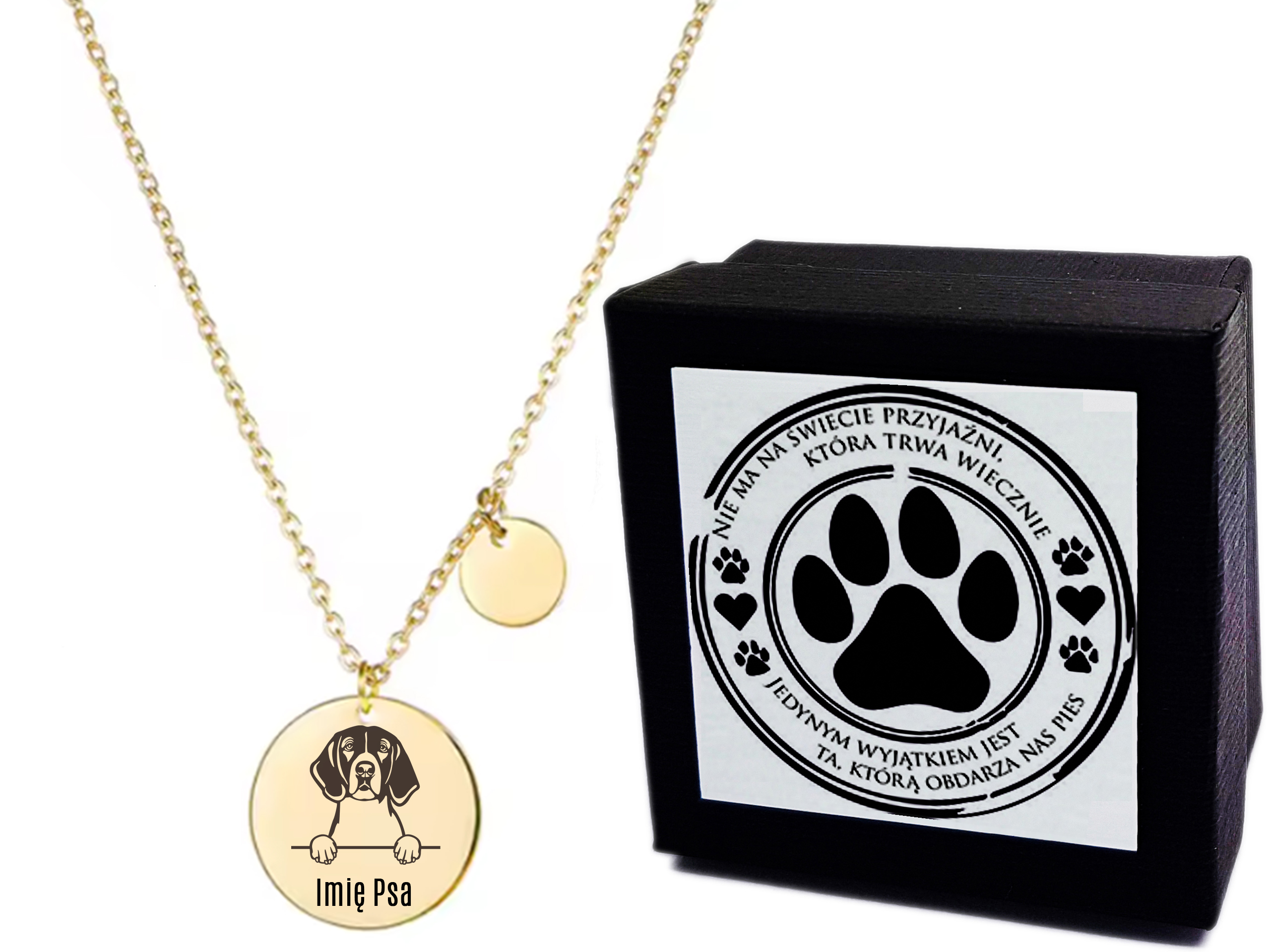 🐾 Złoty naszyjnik z grawerem rasy psa + imię pupila + etui