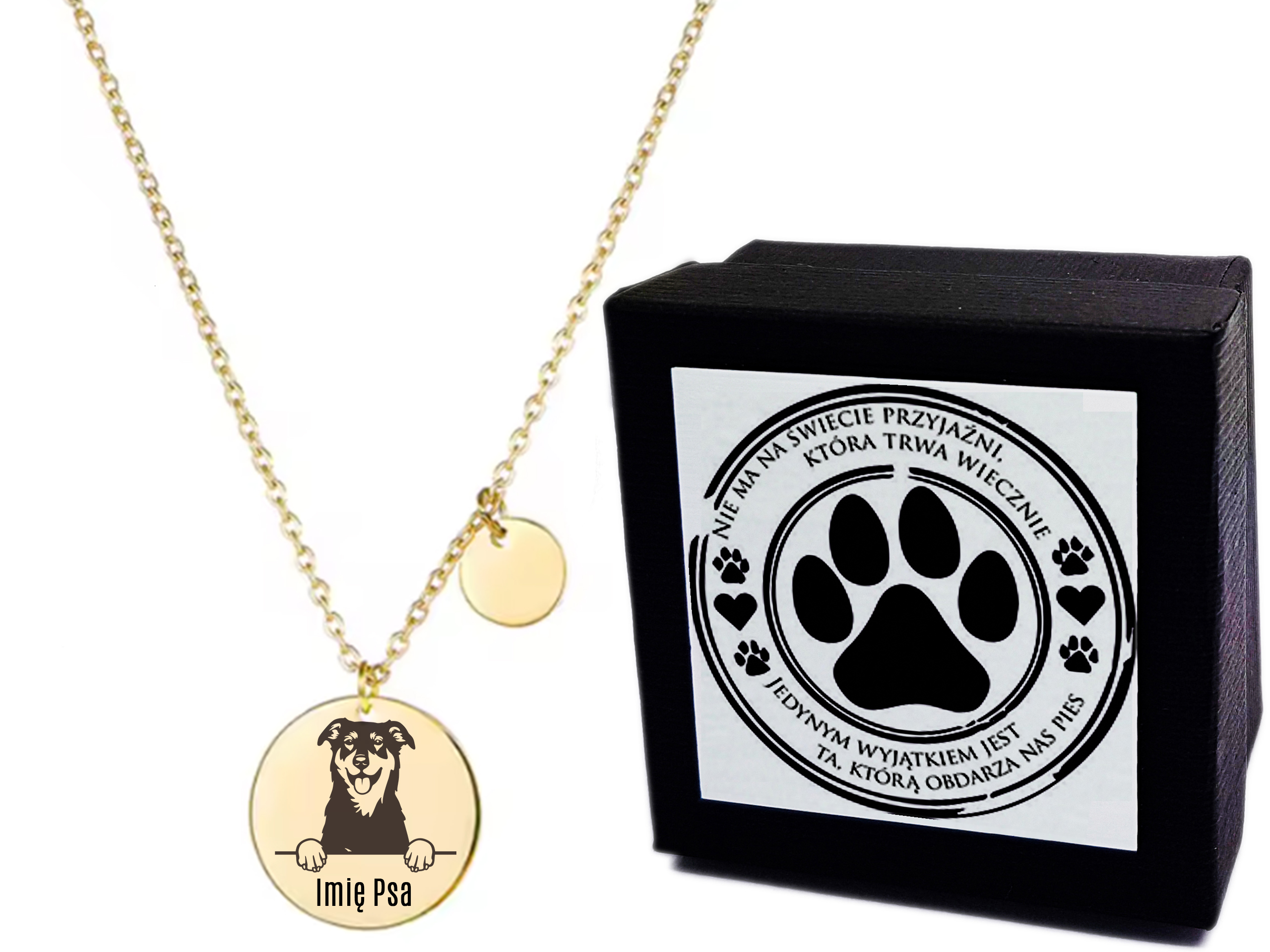 🐾 Złoty naszyjnik z grawerem rasy psa + imię pupila + etui