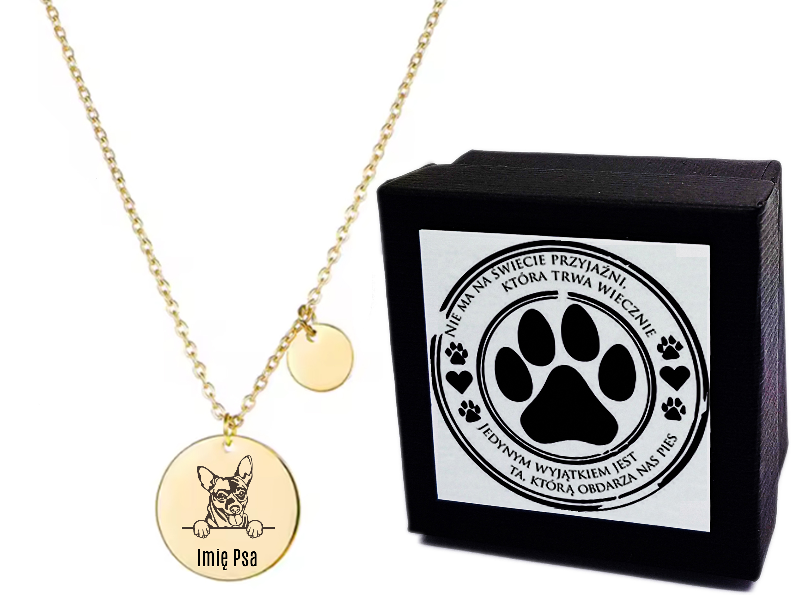 🐾 Złoty naszyjnik z grawerem rasy psa + imię pupila + etui
