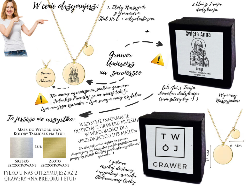 Złoty naszyjnik ze Świętą Anną + etui z jej wizerunkiem i możliwością personalizacji
