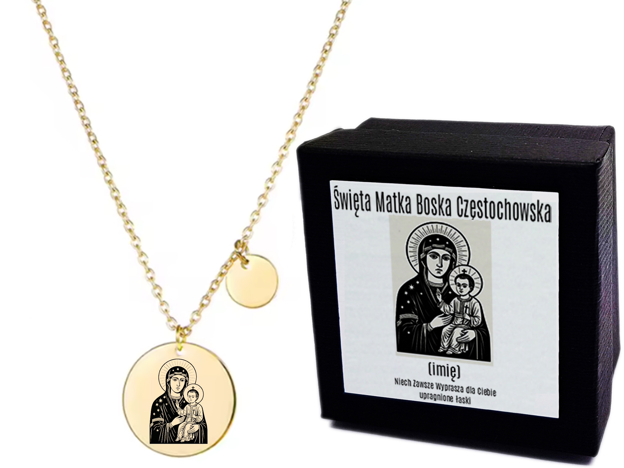Naszyjnik Złoty Damski Medalik – Św. Matka Boska Częstochowska – Celebrytka z Grawerem – Kółka – Delikatny – Prezent dla Niej + Etui + Grawer