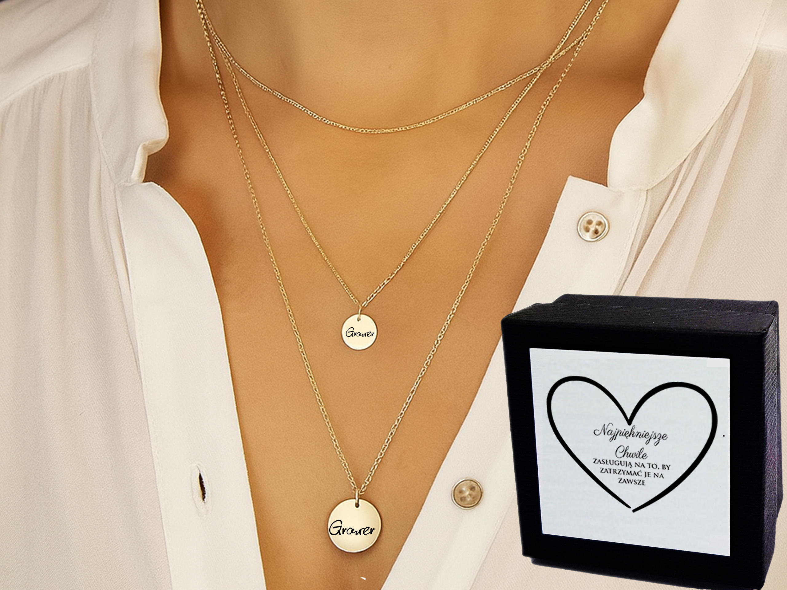 Potrójny naszyjnik z personalizacją – złoto, styl i emocje w jednym zestawie