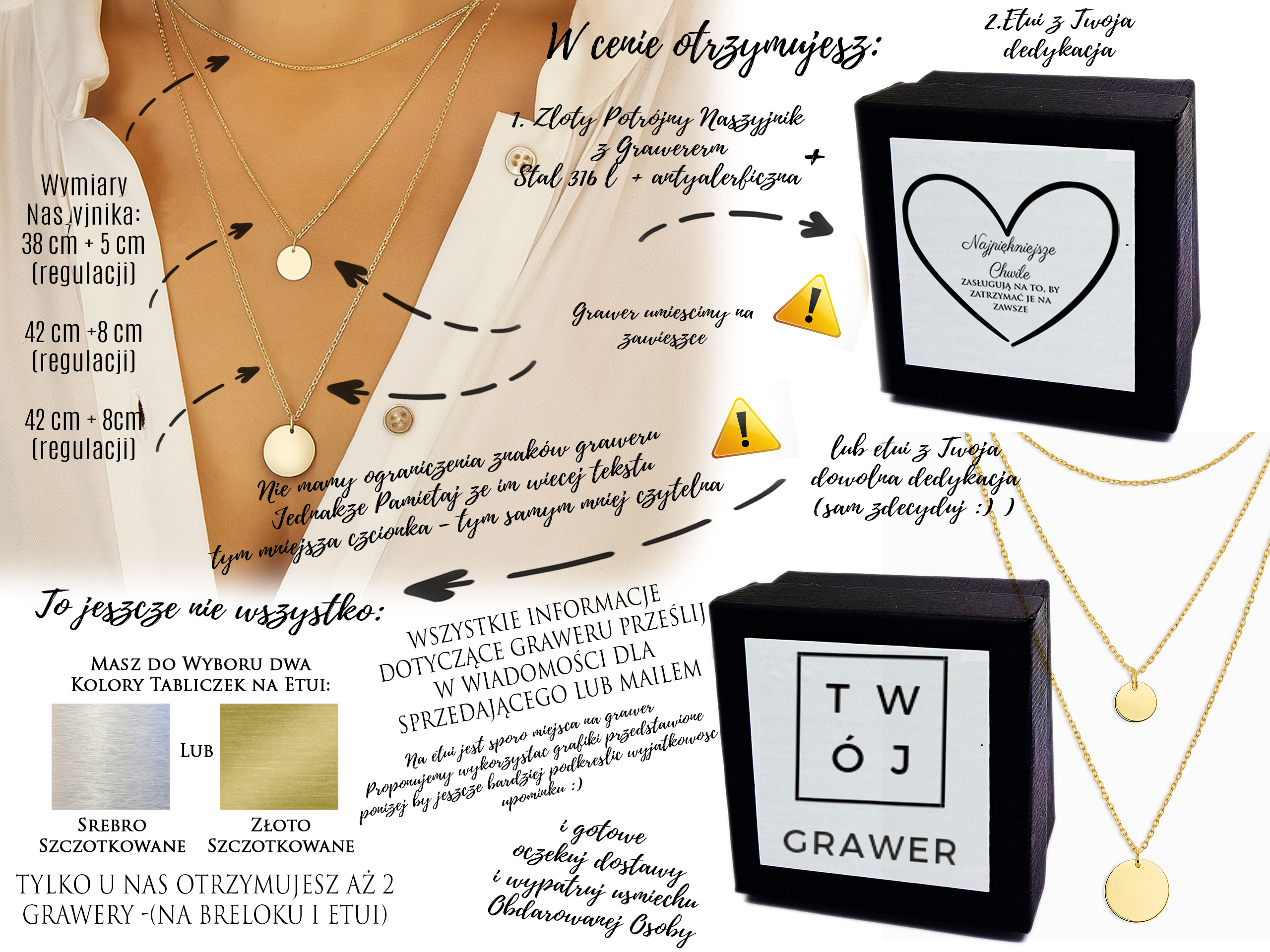 naszyjnik potrójny z grawerem