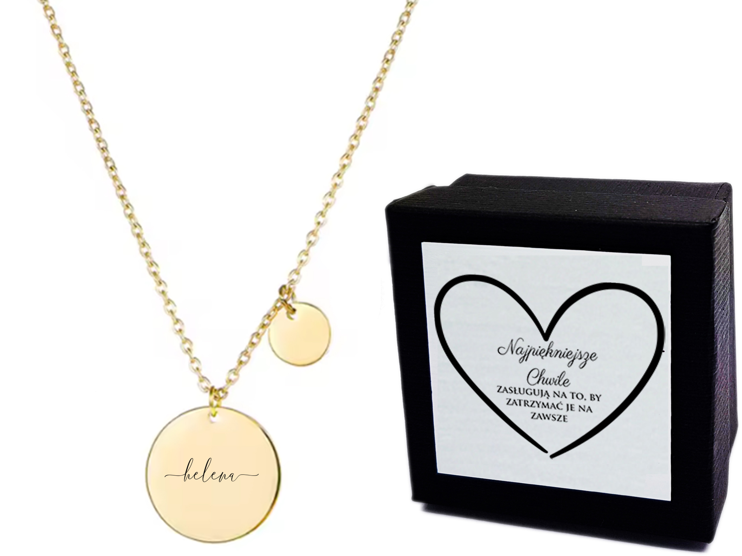 Naszyjnik Złoty Damski Z Imieniem – Helena – Celebrytka z Grawerem – Kółka – Delikatny – Prezent dla Niej + Etui + Grawer