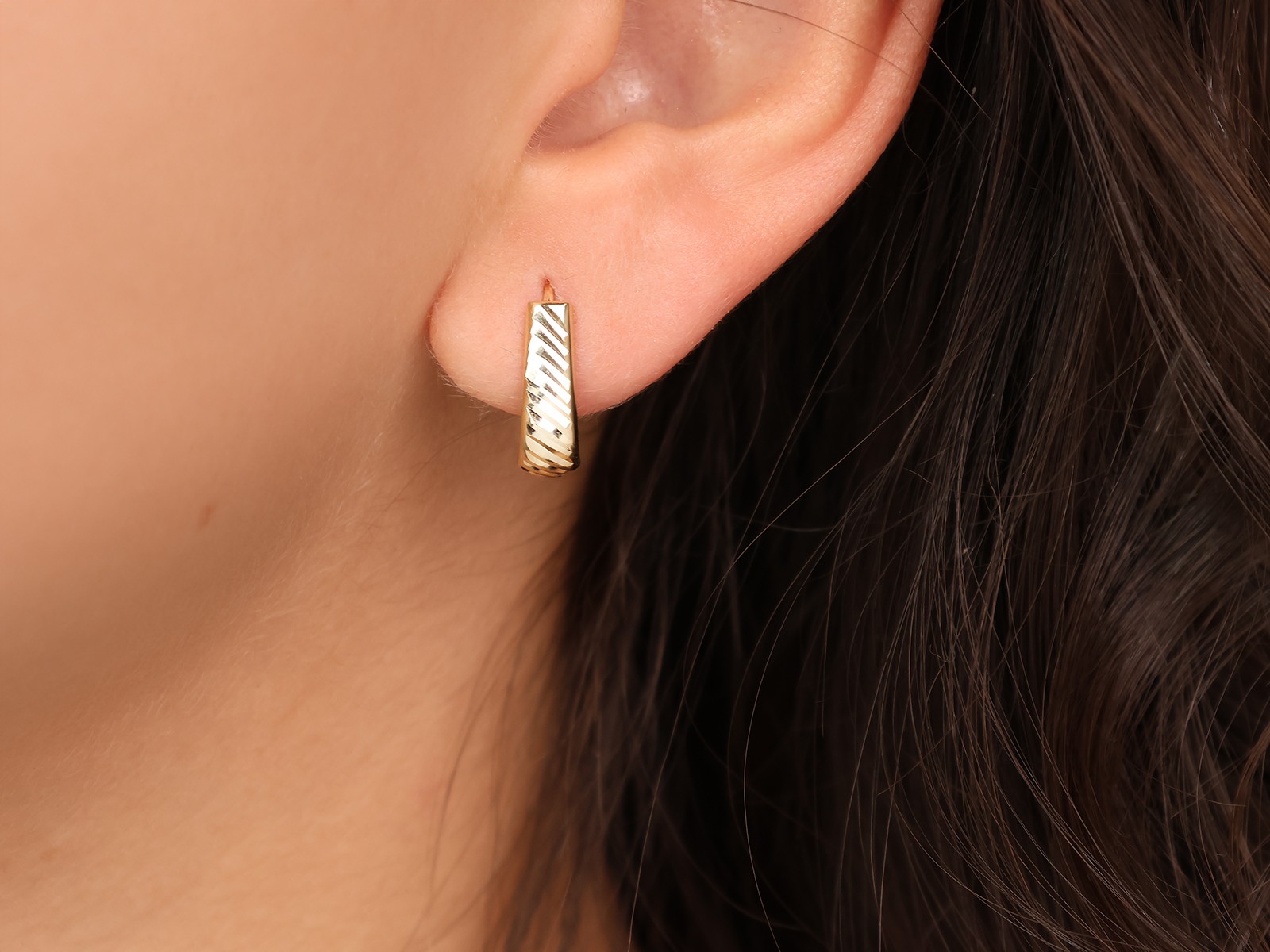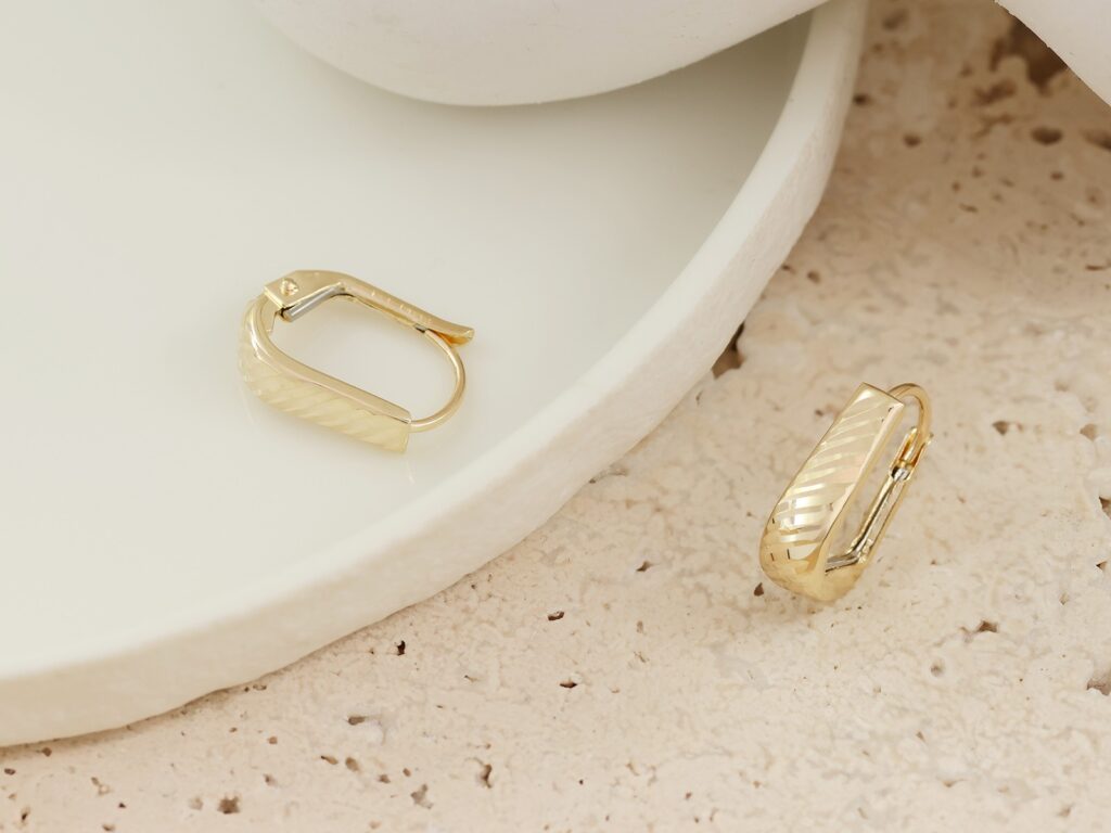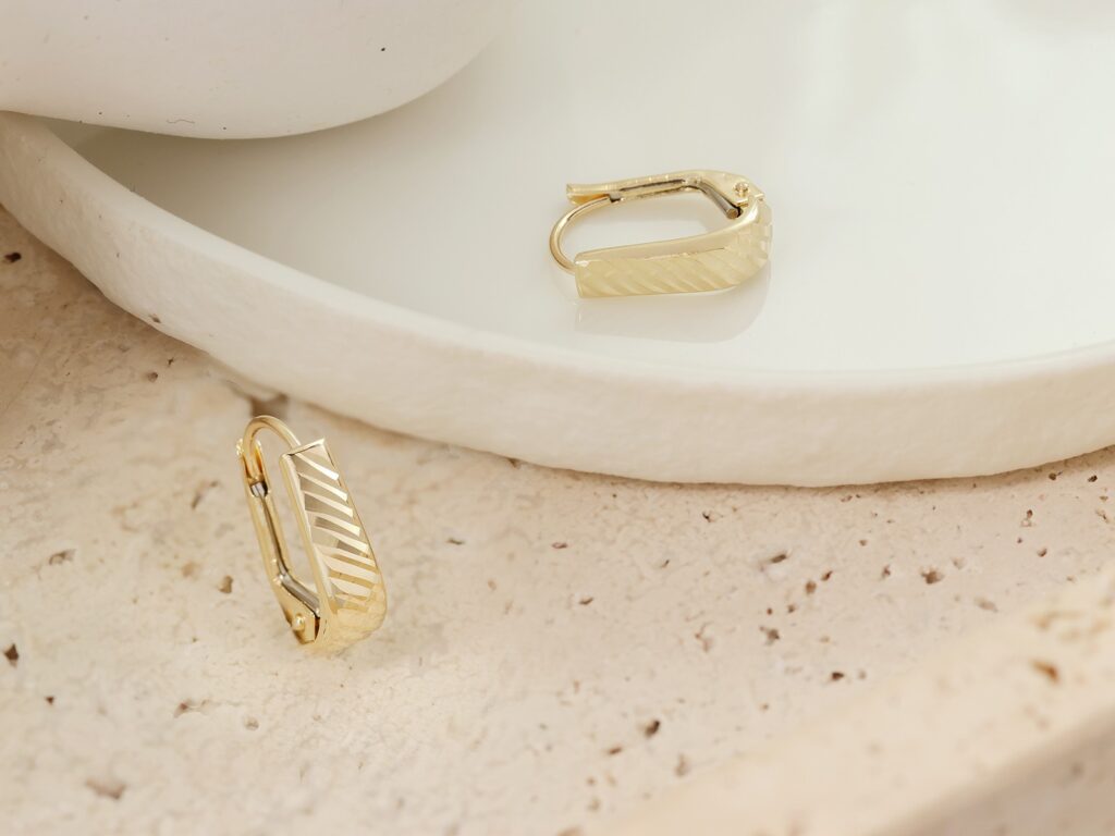 Złote kolczyki próba 585 (14Kt) na angielskim zapięciu. Eleganckie, ponadczasowe i wygodne – idealne na co dzień i wyjątkowe okazje.
