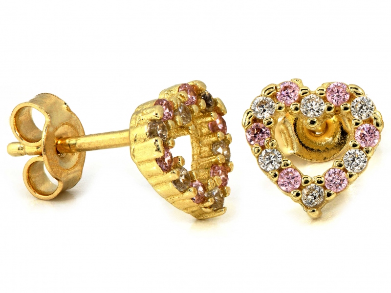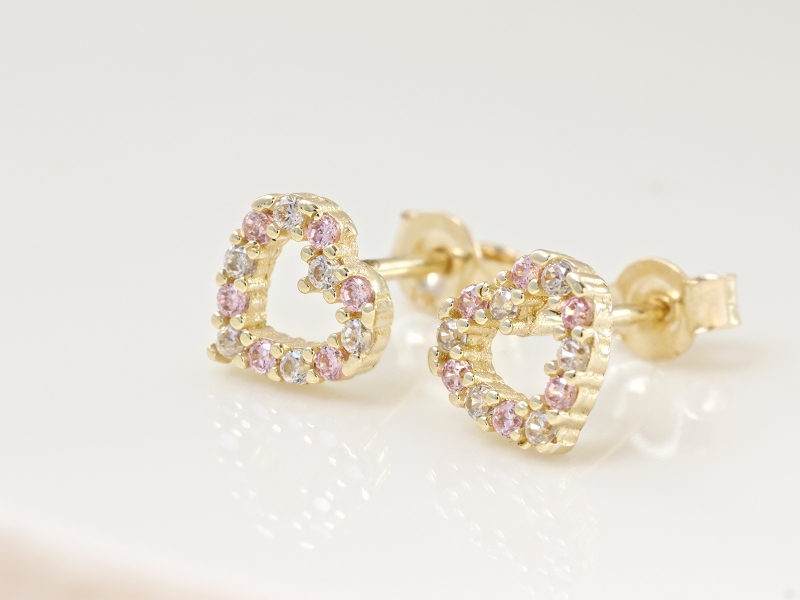 Złote kolczyki wkrętki próba 585 (14Kt) serca z cyrkoniami – subtelny blask i elegancja