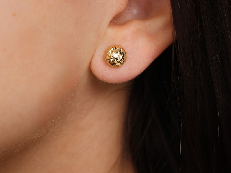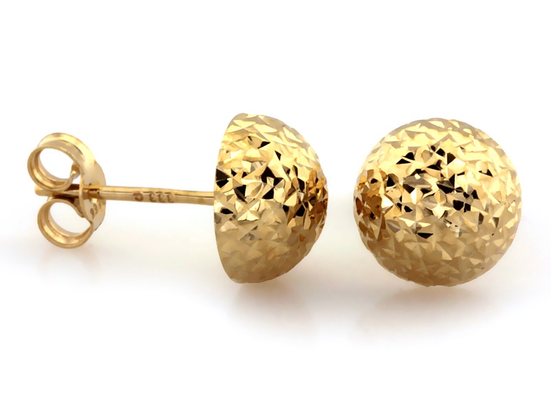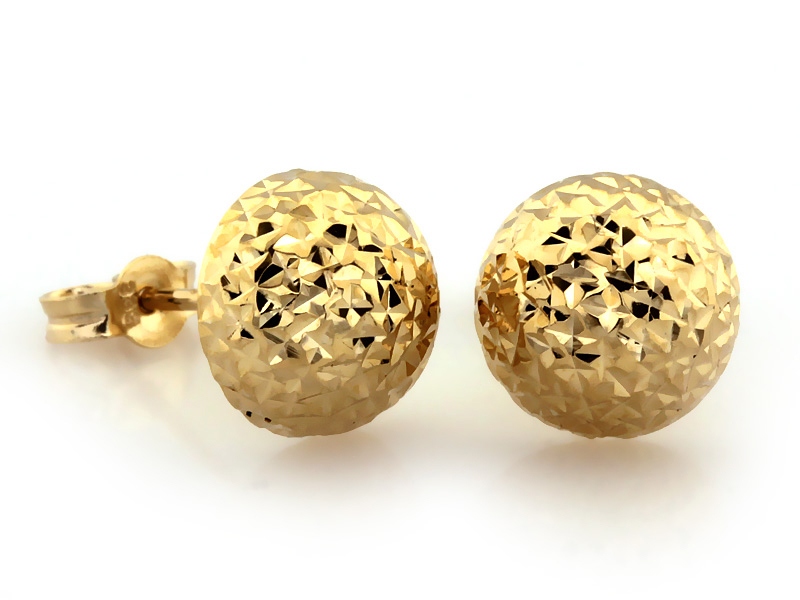 Złote kolczyki wkrętki próba 585 (14Kt) wkrętki kulki diamentowane 8mm połówki – elegancja i nowoczesny styl