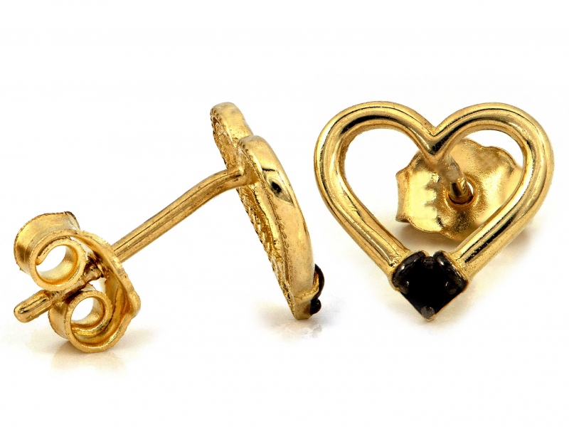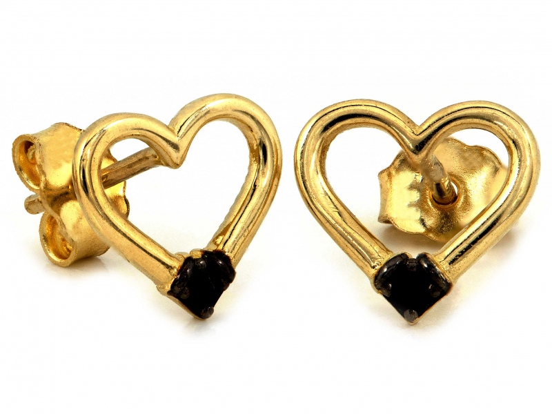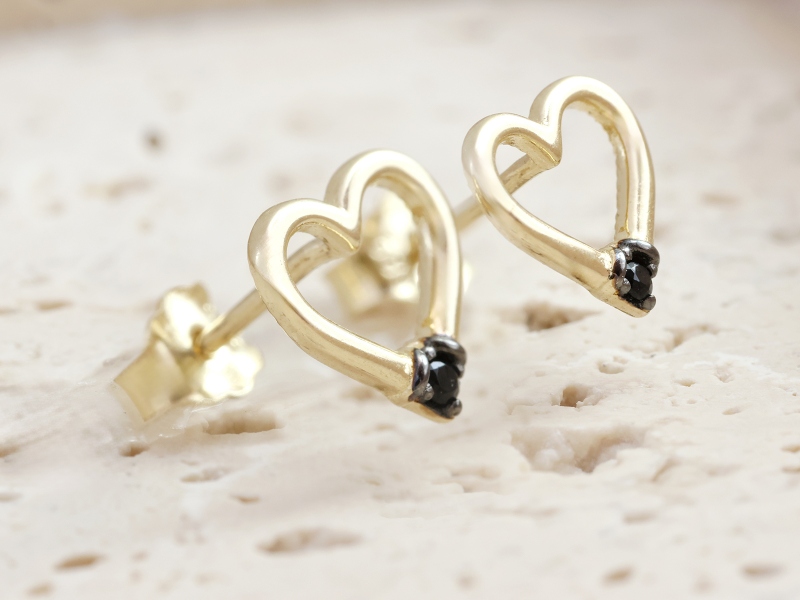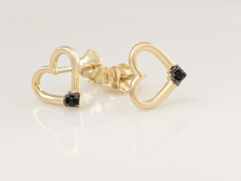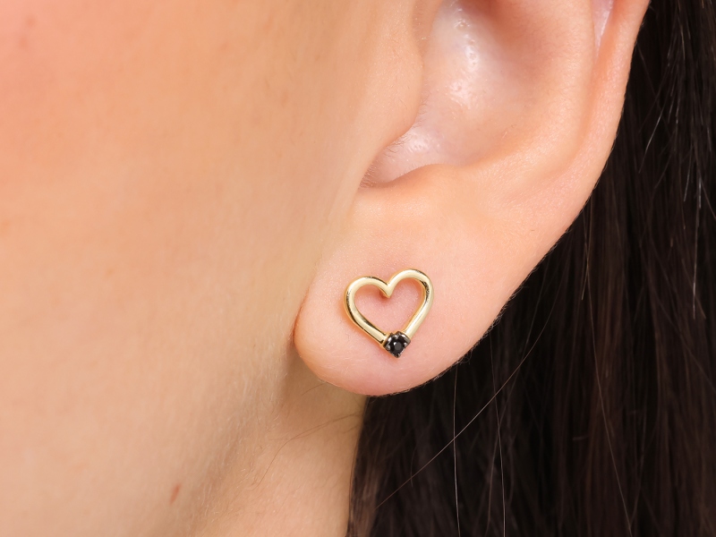 Złote kolczyki wkrętki próba 585 (14Kt)serca z czarnymi cyrkoniami – elegancja i nowoczesny styl