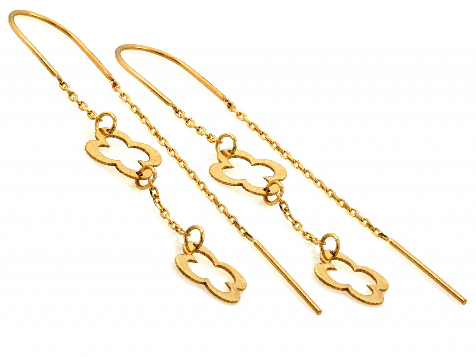 Złoty kolczyki – Przeciagane – Podwójna Koniczynka – Prezent dla niej – Złoto pr. 585