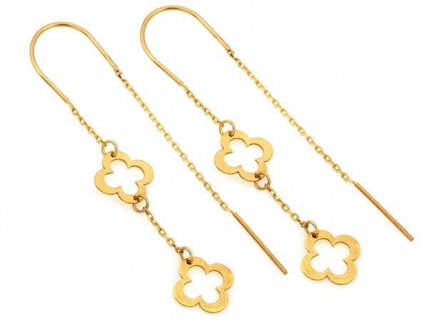 Złoty kolczyki – Przeciagane – Podwójna Koniczynka – Prezent dla niej – Złoto pr. 585